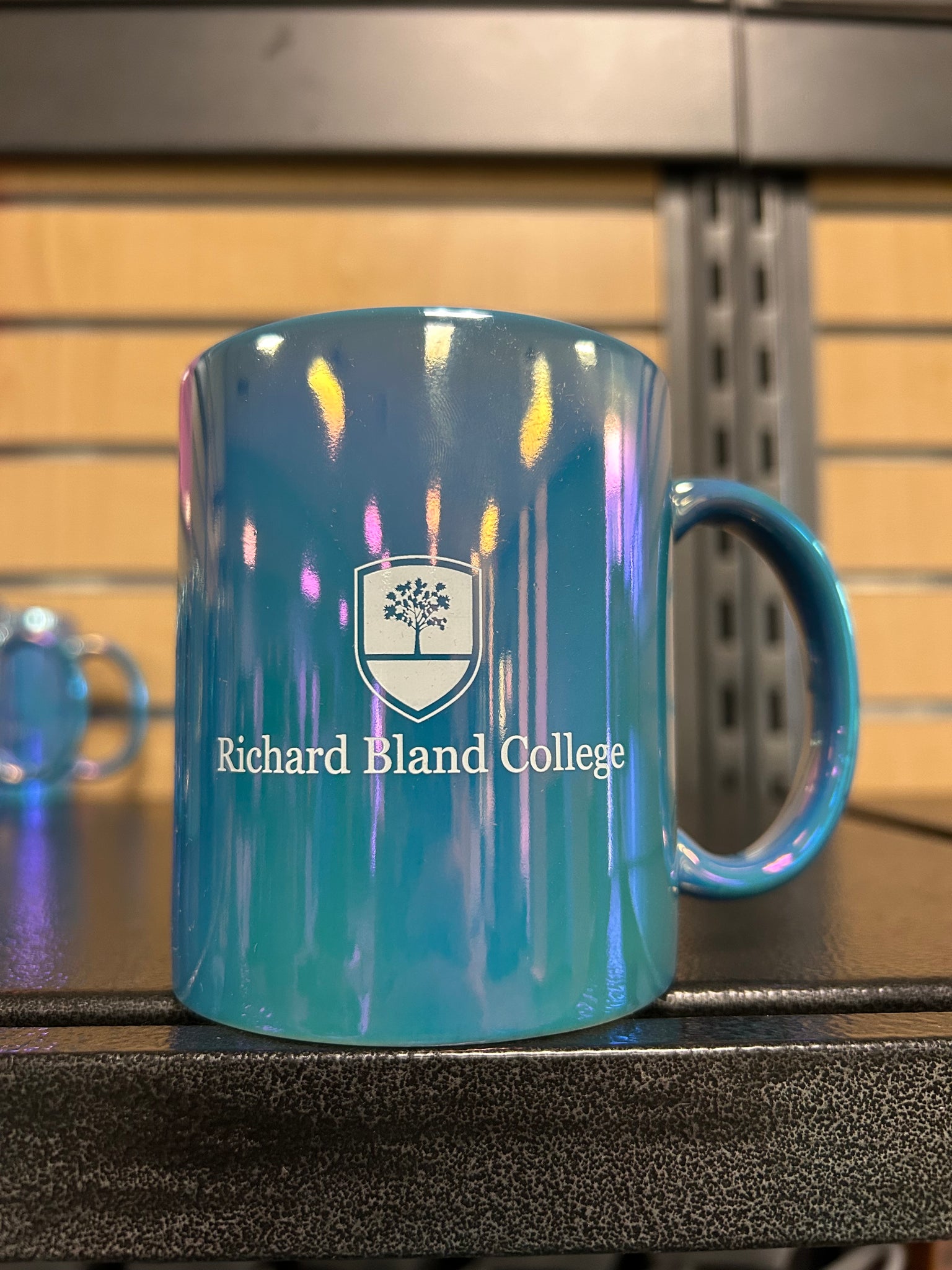 3.75" x 4.75" iridescent mug with C-shaped handle. Dishwasher safe.